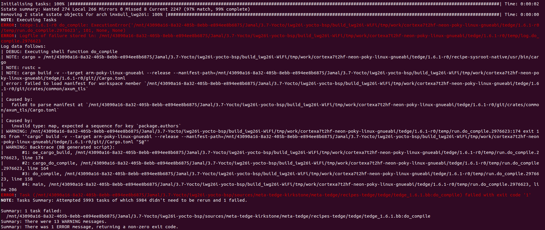 Currently, I copied the recipes-tedge folder from meta-tedge and added it into our Yocto layer. After that, I encountered ownership and Cargo-related errors. To bypass these, I temporarily removed the following lines from: