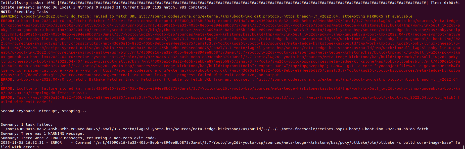 However, I encountered another error, which I have attached as an image. It shows a fetch error from Git. Could you please review it and let me know what we might be doing wrong?